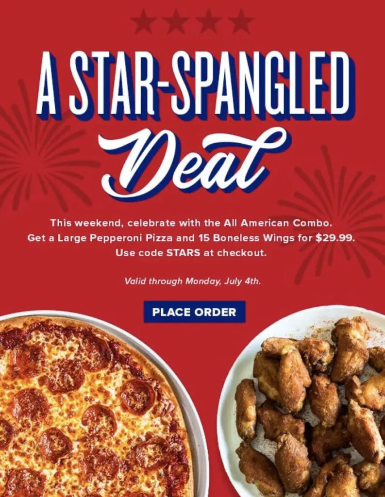 Imagine celebrating the 4th of July with a feast that’s as explosive as the fireworks lighting up the sky. Big Mama’s and Papa’s Pizzeria has your holiday covered with their unbeatable Pizzatizer Deal For $23.99 (13″ Medium 2-topping Pizza, 2 Chicken With Fries And 2 Sodas). No need to fumble around for a coupon code; simply tap to check out the deal and you’re all set. This incredible offer is available only at participating locations, making it the perfect way to add some extra sizzle to your Independence Day celebrations. Whether you’re hosting a backyard barbecue or just hanging out with friends and family, this deal ensures that everyone gets a taste of something delicious without breaking the bank.