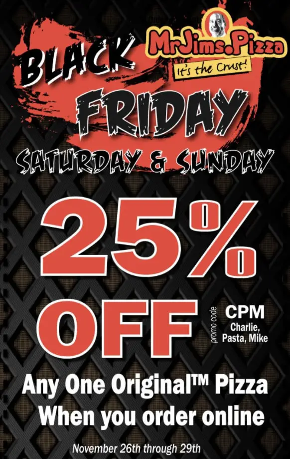 Black Friday and Cyber Monday are just around the corner on Friday, November 25 and Monday, November 28. What better way to supercharge those shopping vibes and even take advantage of a few stocking (and tummy) stuffer ideas than with these tasty Black Friday Pizza Deals as well as Cyber Monday and Fall Pizza Specials.