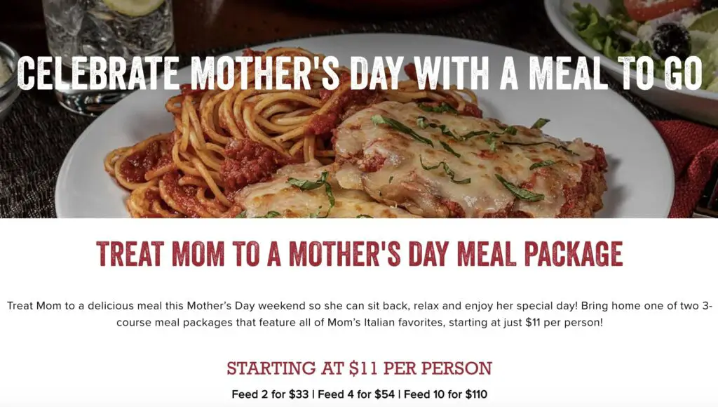 Mother’s Day Packages (Salad, Entree, Dessert) are now available for Pick Up, Curbside, or Delivery at Bertucci’s Italian Restaurant from Friday, May 10th to Sunday, May 11th. Treat your mom to a delicious meal without the hassle of cooking on her special day. The package includes a salad, entree, and dessert, making it the perfect way to celebrate Mom in the sweetest way. Make sure to secure your reservation early to ensure availability and show your mom how much you appreciate her with a delectable meal from Bertucci’s Italian Restaurant this Mother’s Day.
