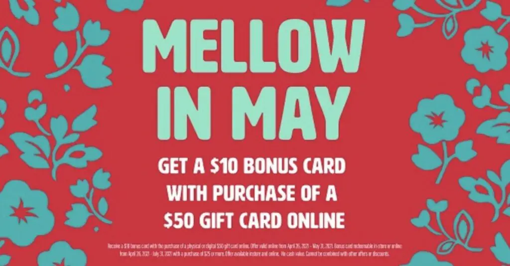 Buy $50 eGift Card and Get $10 eBonus Card: California Pizza Kitchen is offering a special deal in celebration of Mother’s Day. From April 23rd to May 11th, 2025, customers who purchase a $50 eGift card will receive a $10 ebonus promotional card in return. This is a great opportunity to treat your mom to a delicious meal at CPK, or simply stock up on gift cards for future visits. To take advantage of this offer, visit cpk.com for more information. Don’t miss out on this tasty deal!