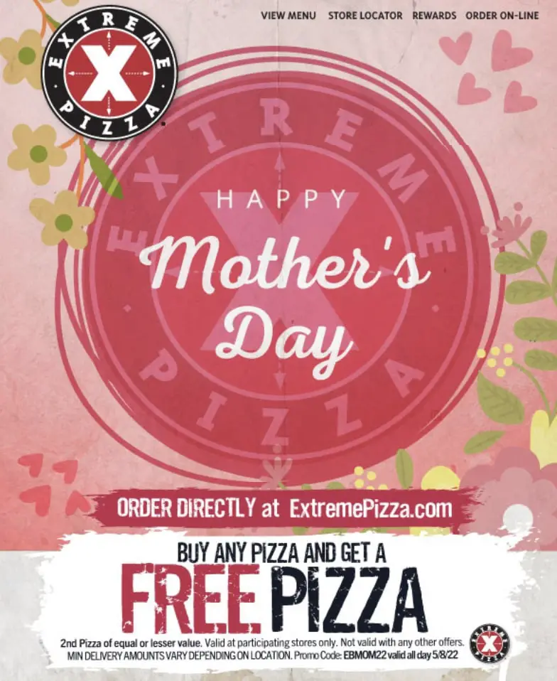 Check back soon as we’ll be posting more 2025 Mother’s Day food deals on pizza as they become available.