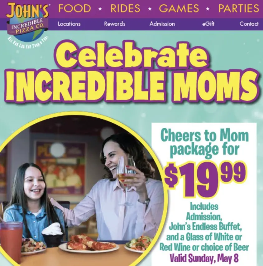 John’s Incredible Pizza Kids Get 400 Free Prize Tickets They Can Use to redeem for an incredible mom Mug to Gift.