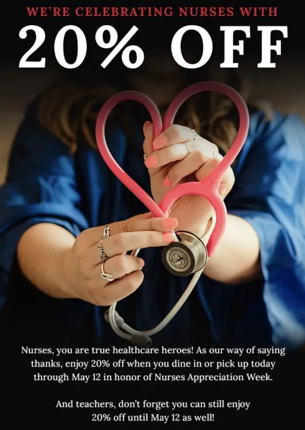 It’s time to show our appreciation to all the nurses who care for us, our friends, and our family. To all our nurses, it’s your special week and these pizzerias are offering special offers, promotions, and discounts, so check out these 2024 Nurses Week Food Deals that we have for you!