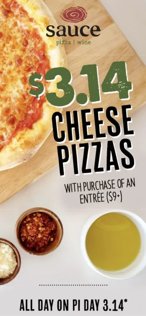 [Pi Day] Get $3.14 Pizza w/ Purchase of $25+ at California Pizza Kitchen is the perfect way to celebrate Pi Day in a delicious way. Indulge in a BBQ Chicken, Traditional Cheese, or Pepperoni pizza for just $3.14 when you dine-in and make a purchase of $25 or more. This special offer is exclusive to Pi Day and is sure to satisfy your cravings for a slice of perfection. Don’t miss out on this amazing deal and enjoy a tasty meal at California Pizza Kitchen on this special day dedicated to the mathematical constant π.