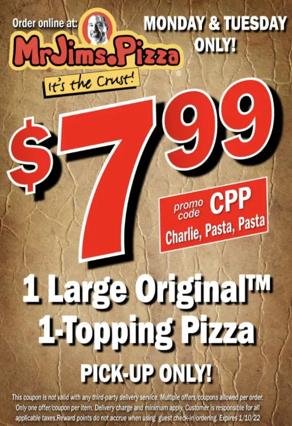 Pat’s Pizza is making Tuesdays the day for delicious pizza deals! Every Tuesday, you can get a large pepperoni or plain pizza with cheese for just $9.99. There are no restrictions on toppings so feel free to customize any way that you’d like – add mushrooms, olives, onions and more to your heart content without breaking the bank! This promotion is available Monday through Wednesday at participating locations only; pricing may vary by location but this particular deal will still save you from spending too much money on dinner tonight!