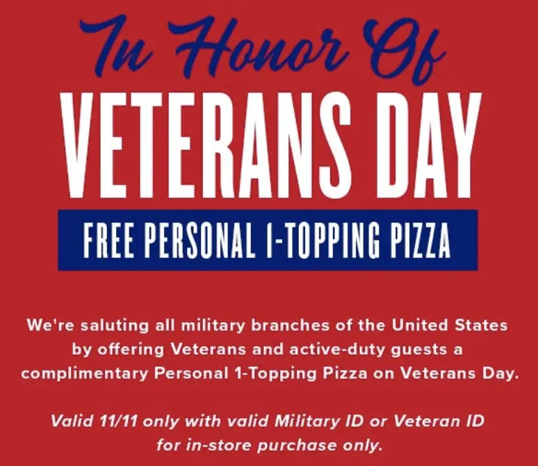 Veterans Day Pizza Deals, Coupons and Discounts (2024)