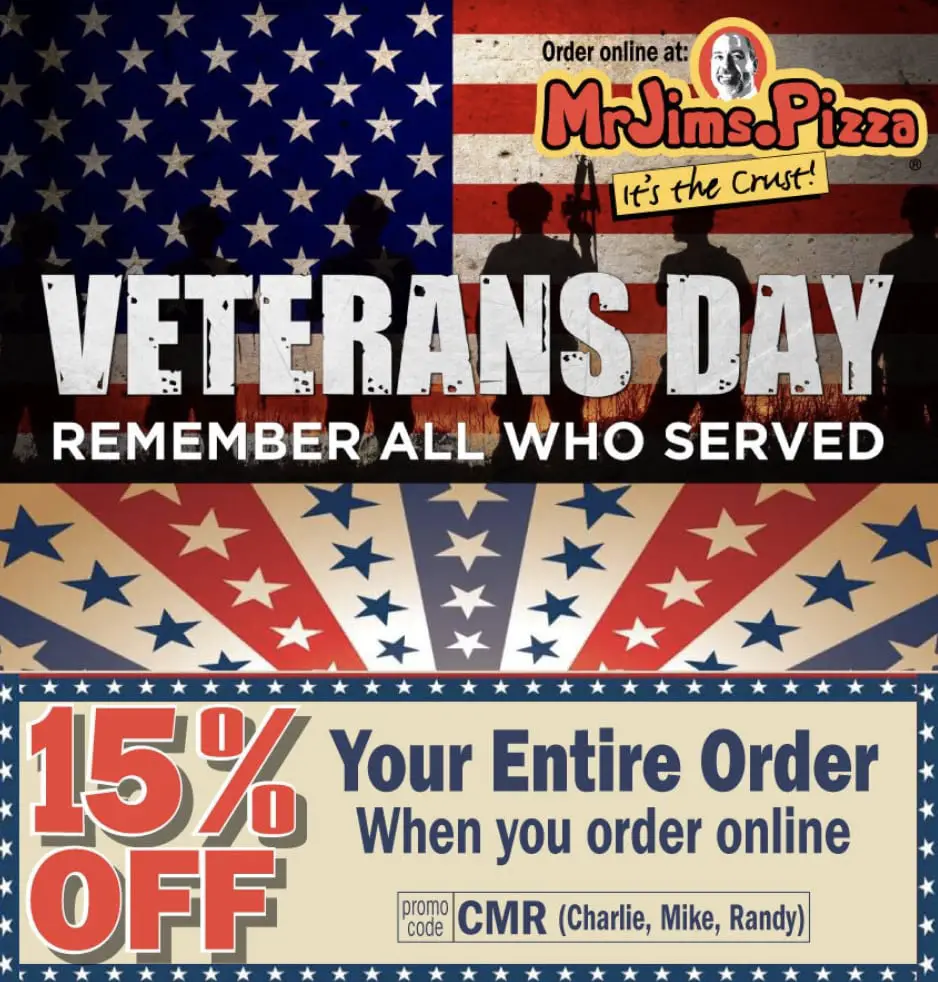 Celebrate Veterans Day with a special offer from Mountain Mike’s Pizza! Mention this Buy 1 Large Pizza, Get $11 Off Second Pizza deal when ordering and get some delicious savings. This promo is valid through November 10, 2024 but cannot be combined with other offers or discounts. So honor our veterans this year by celebrating at your local Mountain Mike’s for great pizza and awesome deals!