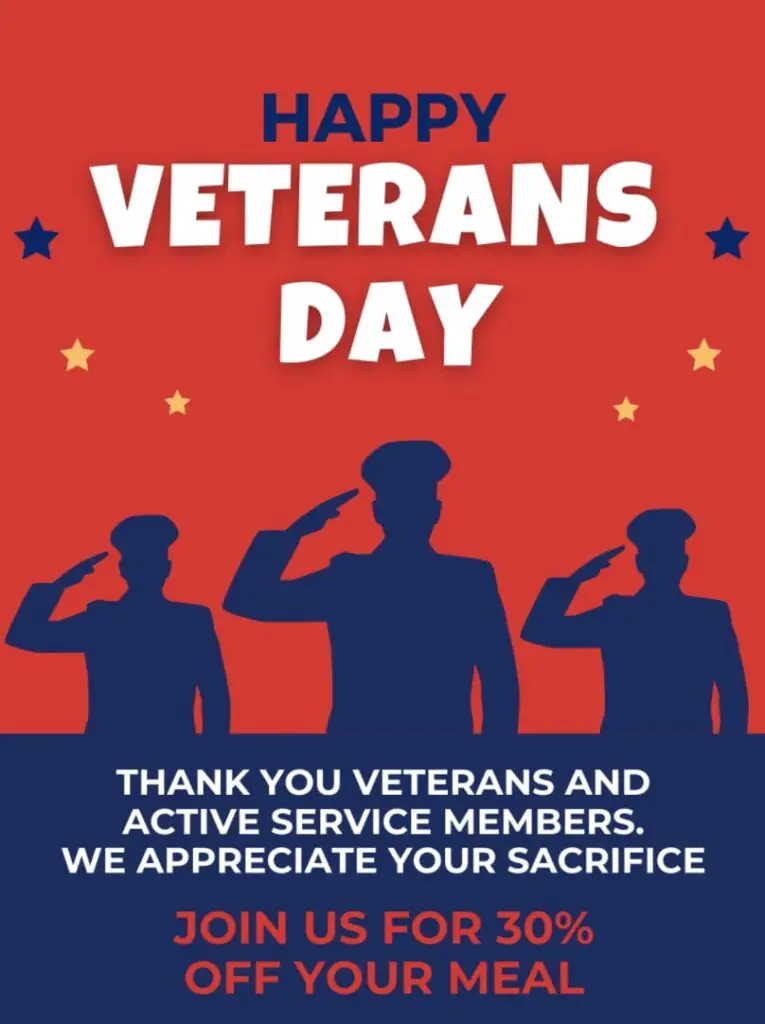 Some participating Aurelio’s locations offer military discounts. Because Aurelio’s is a franchise, owners have flexibility in offering their own promos and discounts. For example, Aurelio’s in Cedar Lake, IN offers Military Mondays when military get 25% off according to their Facebook page and Aurelio’s in Woodbridge, IL offers Military Mondays when military receive 20% off on carryout orders according to their Facebook page. Call your local Aurelio’s to check whether they offer similar discounts on Veterans Day.