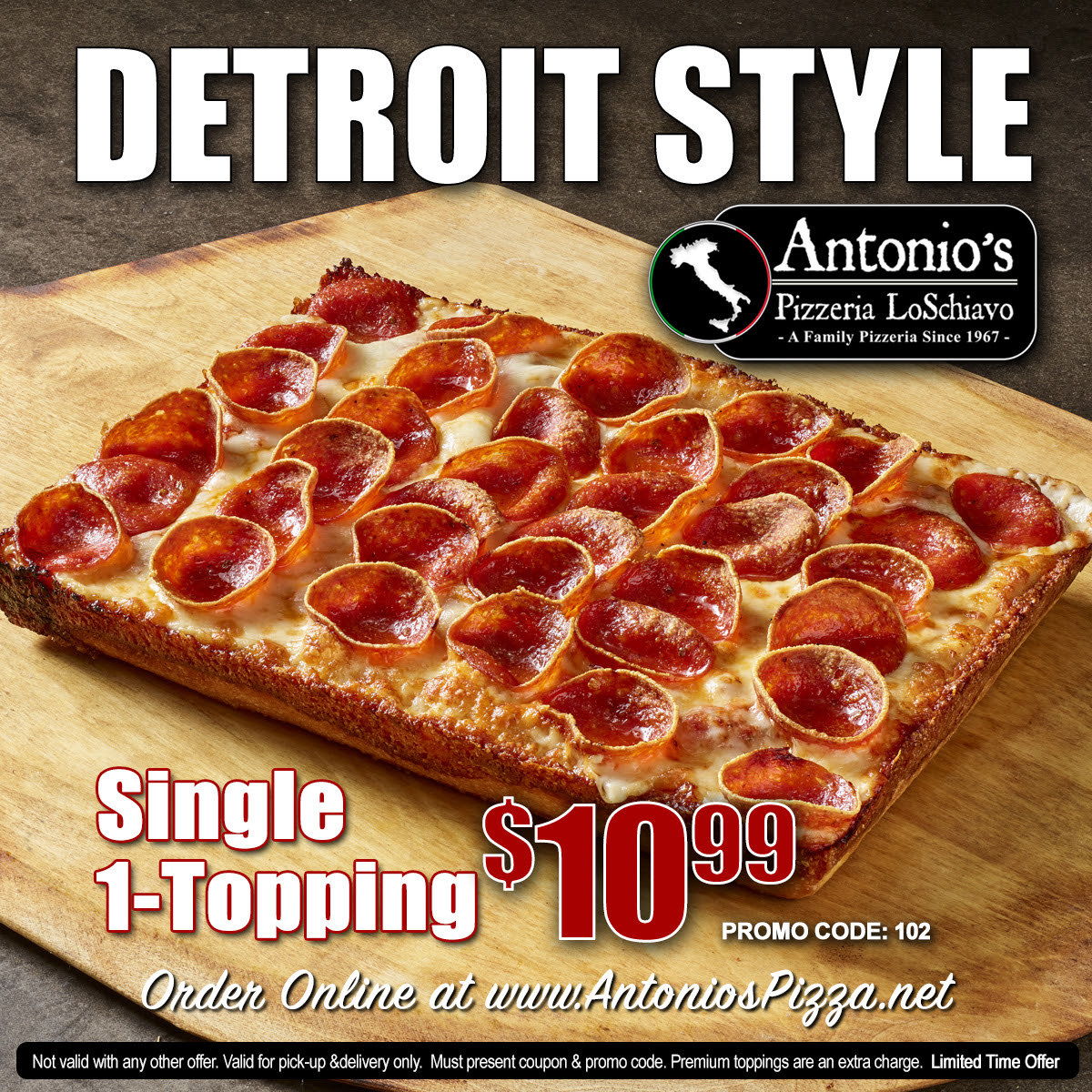 Get Detroit Style 1 Topping Pizza for Just $10.99