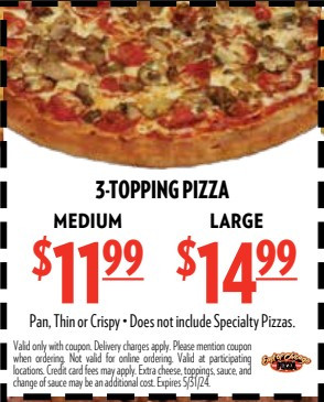 Get Medium 3-Topping Pizza for $11.99 OR Large 3-Topping Pizza for $14.99