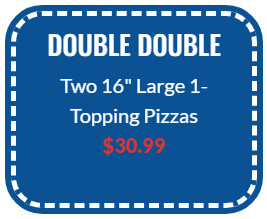 Two 16" Large 1-Toppings Pizzas for $30.99 Only