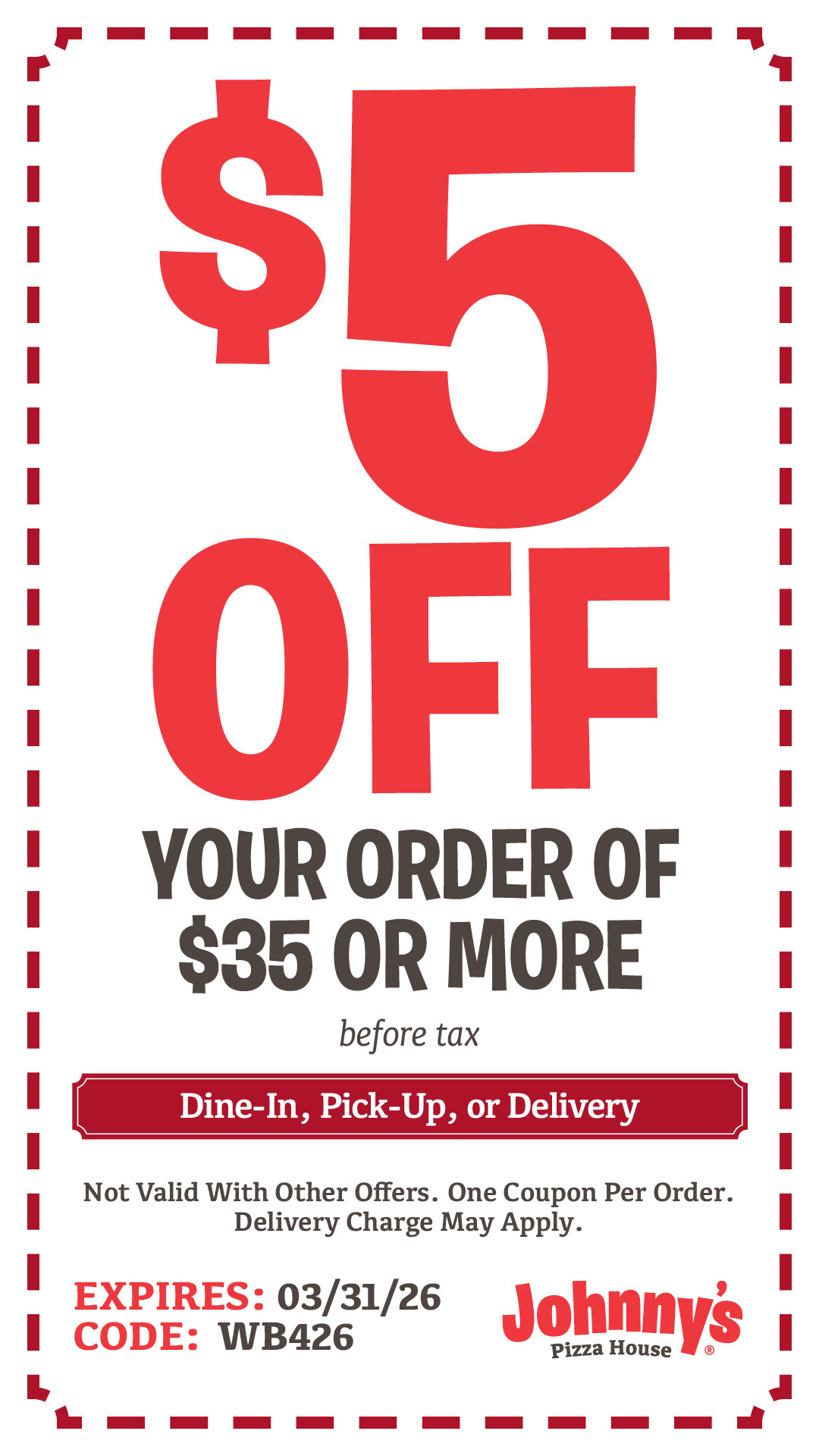 Paste at checkout at Johnny's Pizza House