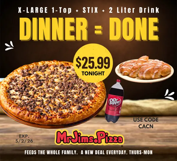 Get XL 1 Topping Pizza, Stix & 2-Liter Drink for $25.99