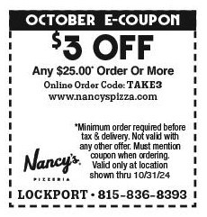 Valid only at Nancy's in Lockport. Use printable coupon or promo code to redeem.