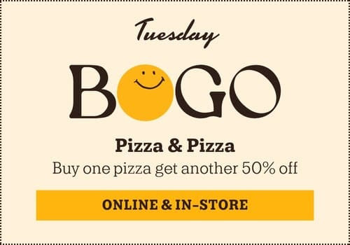 Tuesday Special: Buy One Pizza Get Another 50% Off