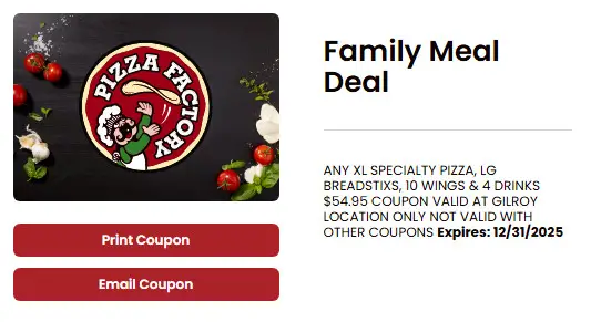 [Gilroy] Get XL Specialty Pizza, Large Breadstixs, 10 Wings and 4 Drinks