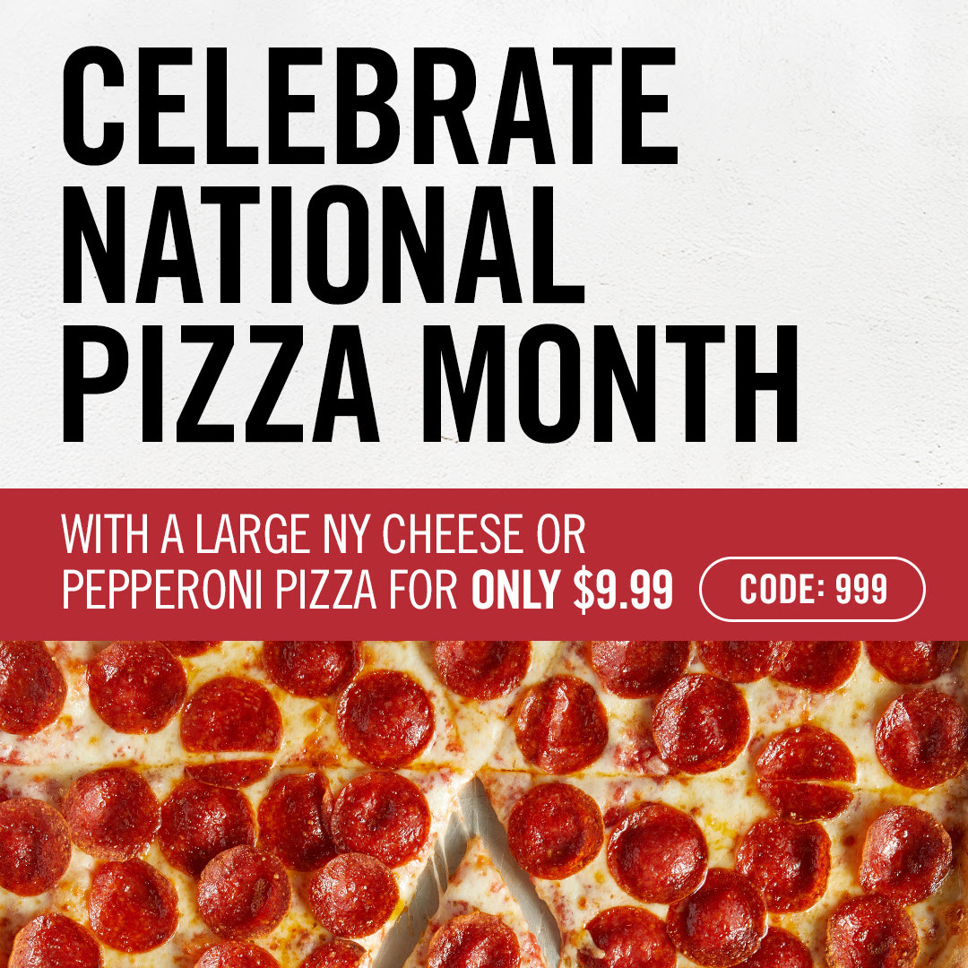 National Pizza Month: 14" Large NY Cheese or Pepperoni Pizza for $9.99