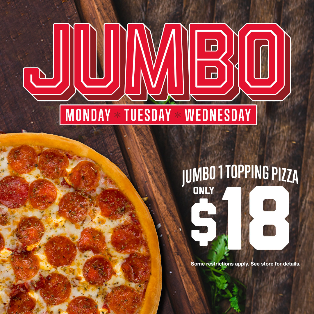 Jumbo Monday, Tuesday, and Wednesday: Jumbo 1-Topping Pizza for Only $18